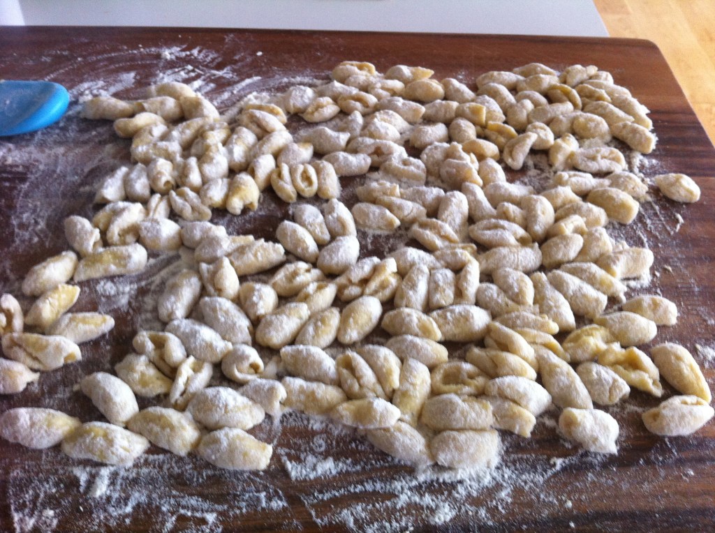 1. Laviamo bene le patate e lessiamole. Sbucciamole e passiamole attraverso uno schiacciapatate in una ciotola. Aggiungiamo 1 cucchiaio colmo di farina per ogni patata, il sale e dal composto ottenuto (esso dovrà essere di media consistenza) formiamo, aiutandoci con una forchetta o un rigagnocchi, delle palline rigate.
