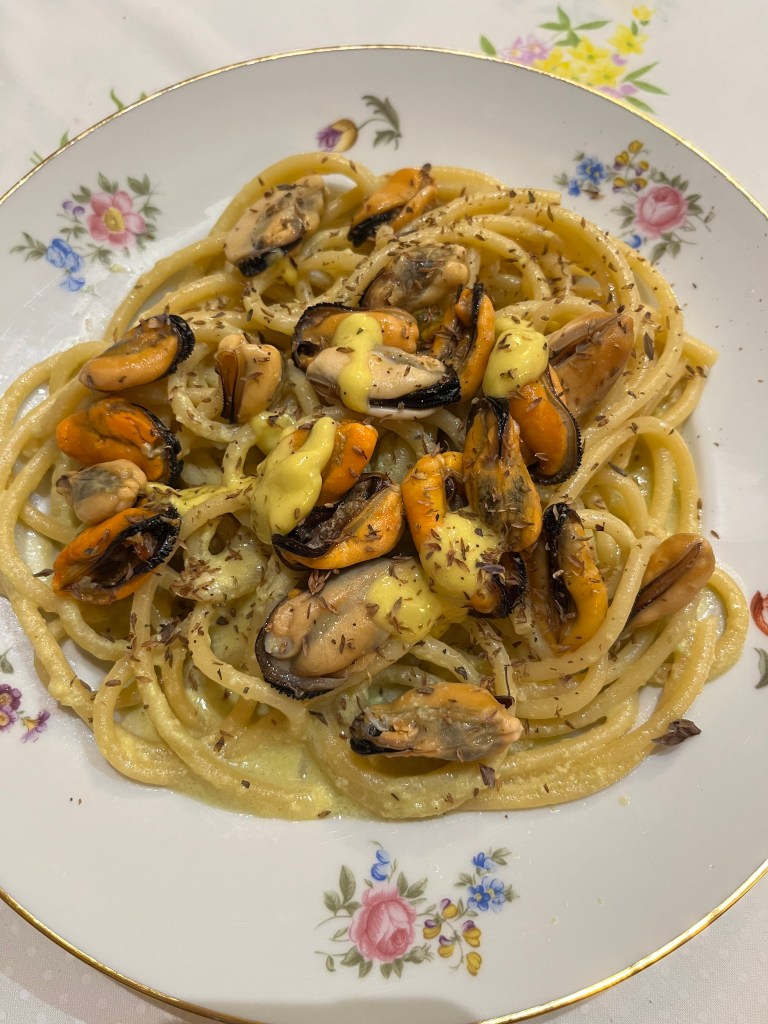 Bucatini; cozze ( preferibilmente nei mesi di maggio-giugno-luglio-agosto ); avocado preferibilmente del tipo marrone; uova; olio Evo; limone; aglio; sale, peperoncino e origano quanto basta.